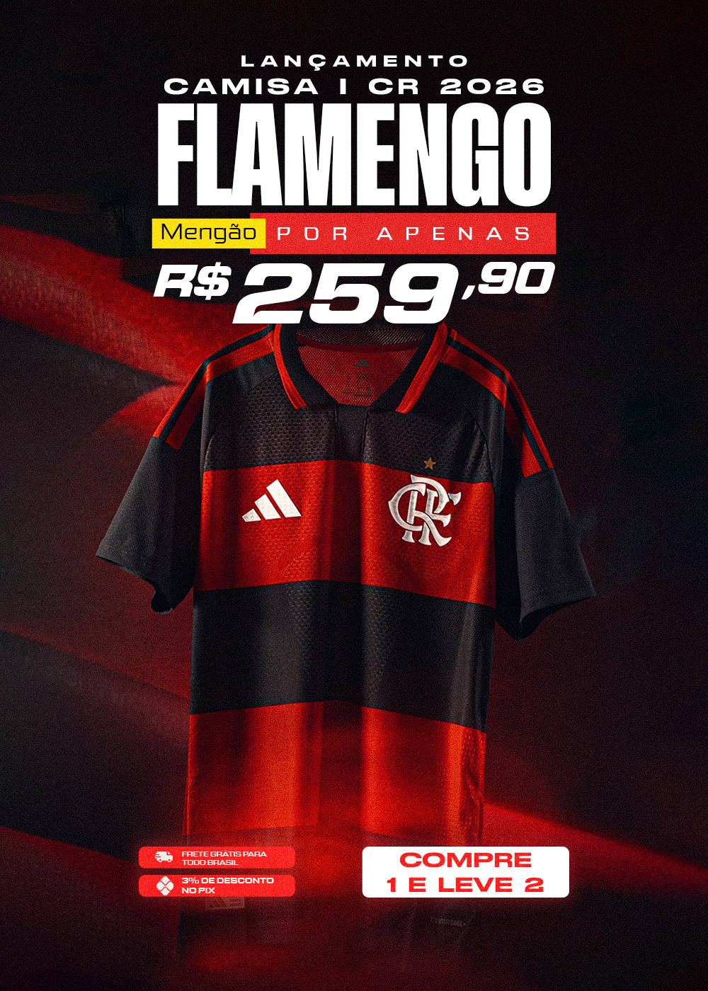 PAGUE 1 LEVE 2Camisa Flamengo Jogo 1 2026/27 Torcedor Masculino